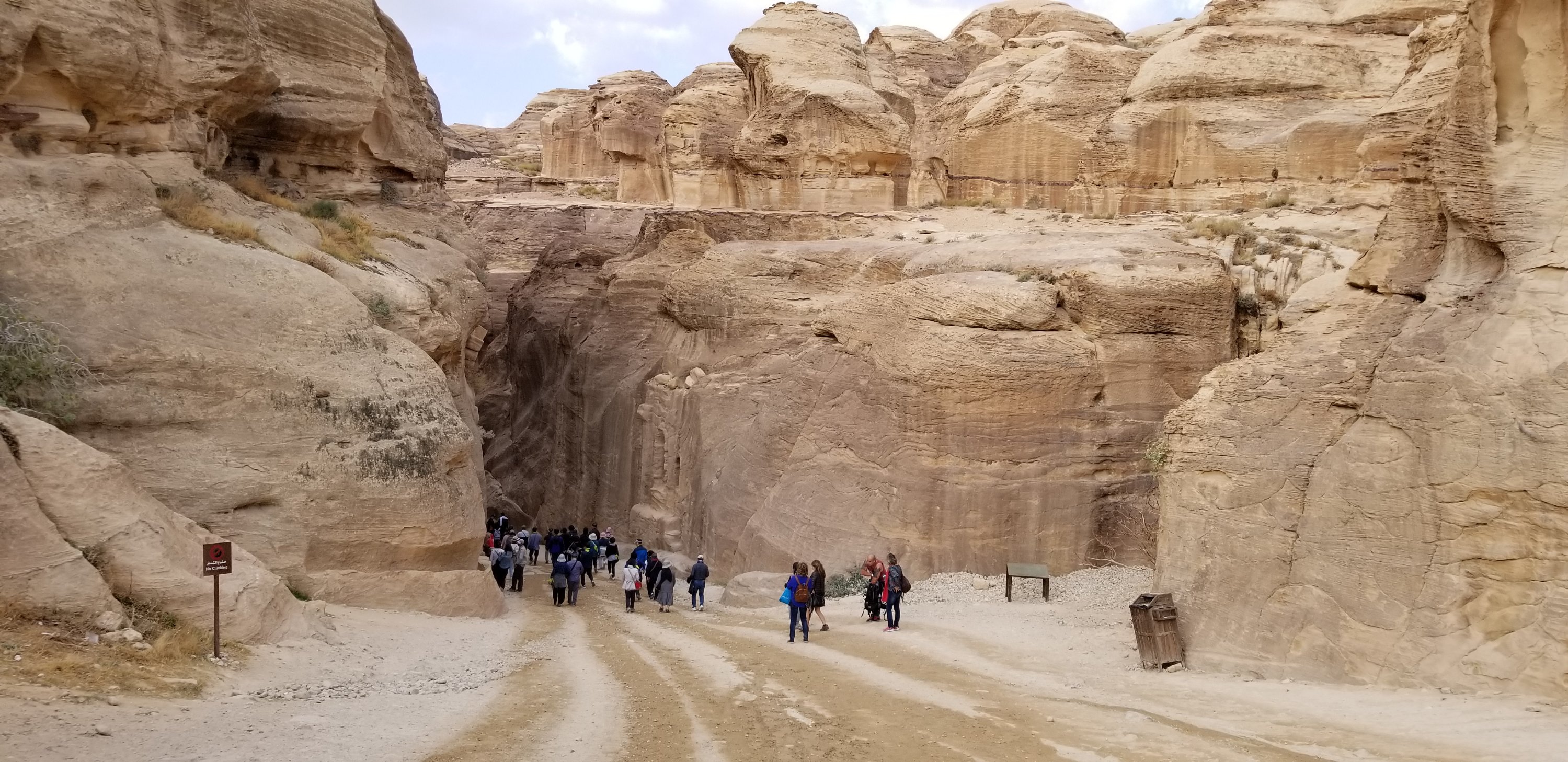 You access the site by a 1.2 KM gorge, complete with water channels , carvings and water fountains for ritual ablutions. At some points the gorge is only three metres wide, making it a tight squeeze for caravans, but perfect for defense.