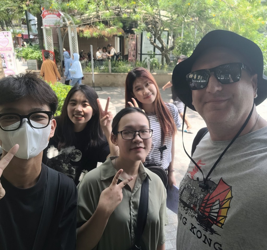 After Halong Bay, nothing was keeping me in Hanoi, except that every bus heading south was booked out, and I spent a few hours trying until I gave up, booked the next day and extended my stay in the hostel. I took another walk around Ho Houm Kiem Lake, this time I attracted the attention of a group of uni students, who had been tasked with interviewing a Westerner. They were lovely and spoke perfect if halting English, and we finished up with selfies and I handed over my Moo card which seemed to delight them (who the hell bothers with business cards in 2023?)