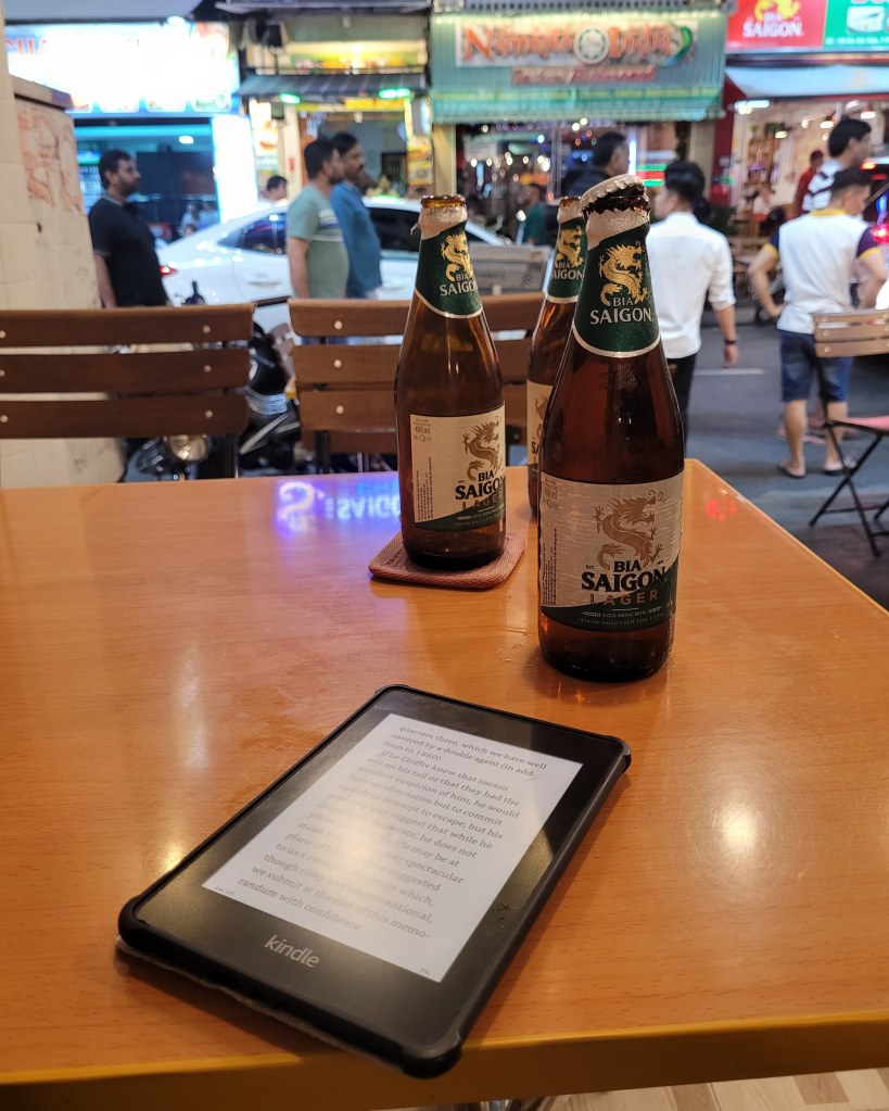 I had a cheerful and cheap dinner of Cantonese fried rice, washed down with three excellent Beer Saigon Greens. The bill came to less than the borderline inedible pizza I had in Dalat, and I tipped moderately, but enough that a few beers could be bought on the way home for one of the staff.