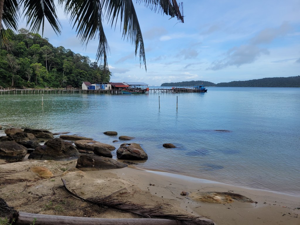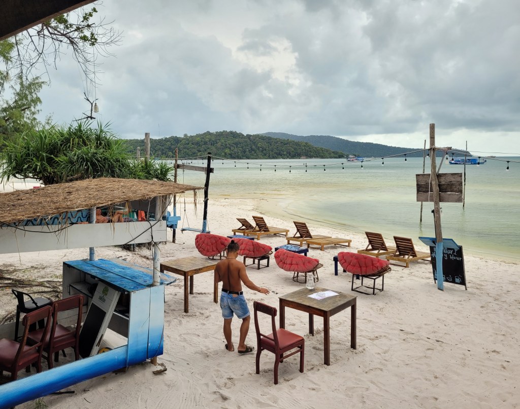 Phnom Penh is ugly because by the time anyone realised they could make it beautiful it was too late. Sihanoukville is ugly out of a twisted sense of civic pride. Rampant Chinese investment has left the place a horrid monstrosity of over-development. Russian interests have led to high crime, and according to the expat I shared a beer with last time I was here, means it is easier to get a sad handjob from a Russian than any local. But I was not here for handjobs, sad or otherwise. I was only interested in getting to Koh Rong Samloen. I only had enough time to order, but not drink a latte before a lady escorted us from the bus office to the pier. Still clutching my coffee, I managed to go to the Seven-Eleven to buy some jubes and some questionable Dim Sum on a stick, then jumped on the ferry. Luckily and dispite the best efforts of the skipper, I ate and kept down the coffee, jubes and dim sum by the time we docked at Koh Rong Samleon.