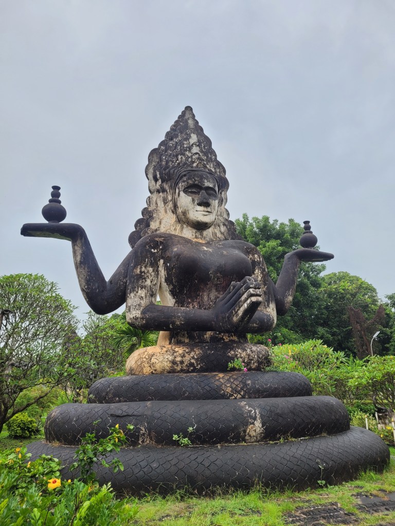I found the park to be a delightfully ramshackle affair, the statues have been allowed to become dirty and in some cases broken, the iron rebar showing and rusting away. I found this to be perfectly symbolic of the nature of Laos, so much faded glory lined by good intention.