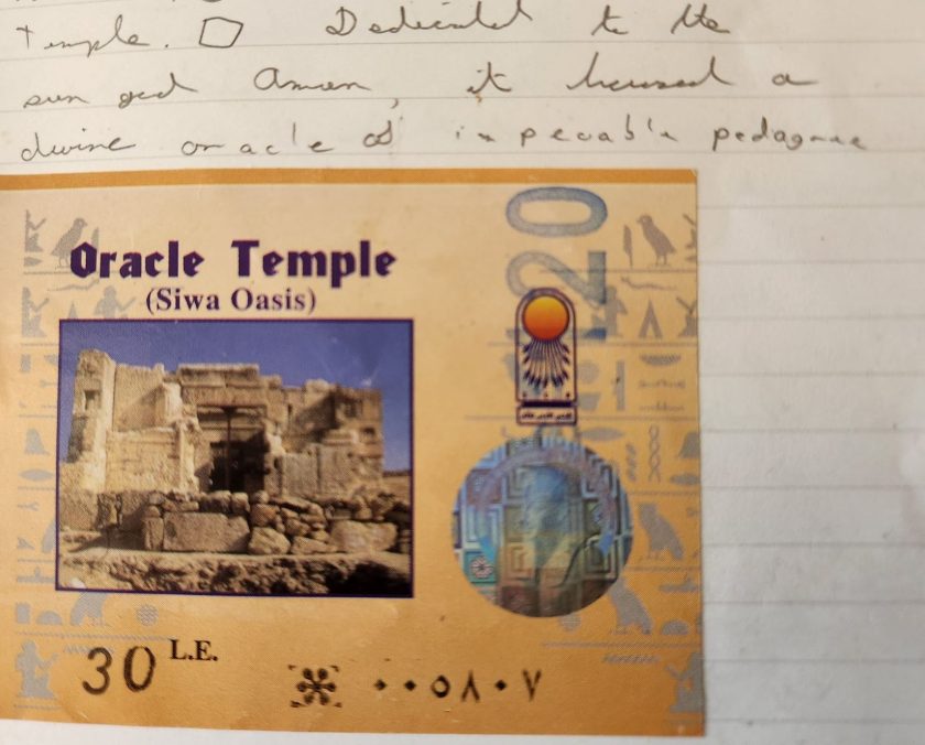 From the road, I could see on a nearby hill the main purpose of this walk in the desert sun, another temple of Amun, but more commonly known as the Oracle Temple. Now I put my phone away and relied on my somewhat dubious sense of direction. This caused me to walk through what I suspect was backyards, luckily the owners were too busy elsewhere to complain about this casual trespassing, and I made my way to the trail leading up to the temple, where small children tried to sell me toys, but also pointed me towards the ticket office, where a sleepy man hit me up for 120 EGP.