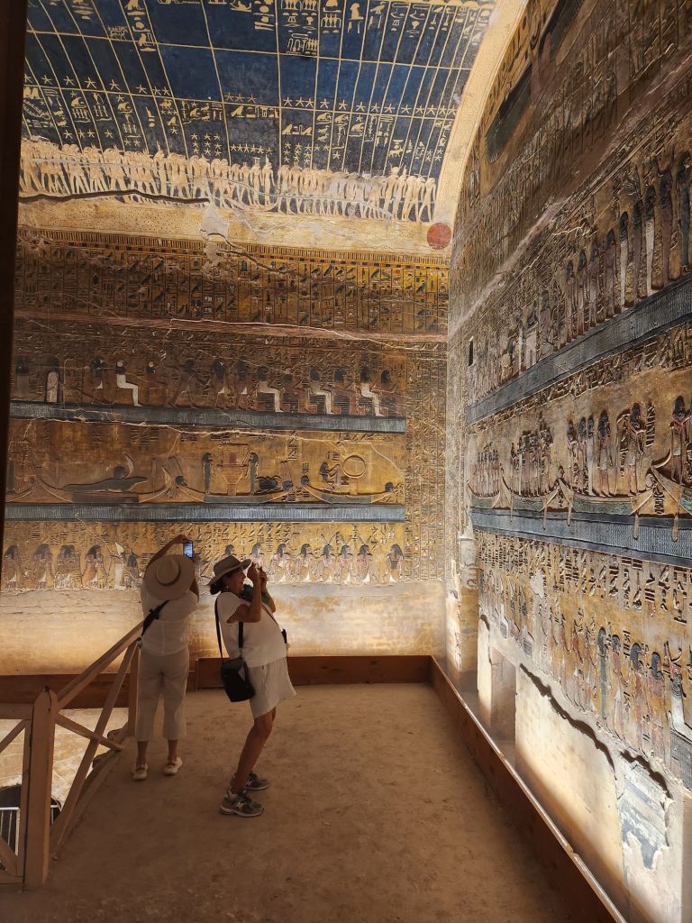 While the whole tomb was stunning, I was greatly drawn to a depiction from The Book of the Heavenly Cow, which I will pretend I knew all about before I visited this tomb.